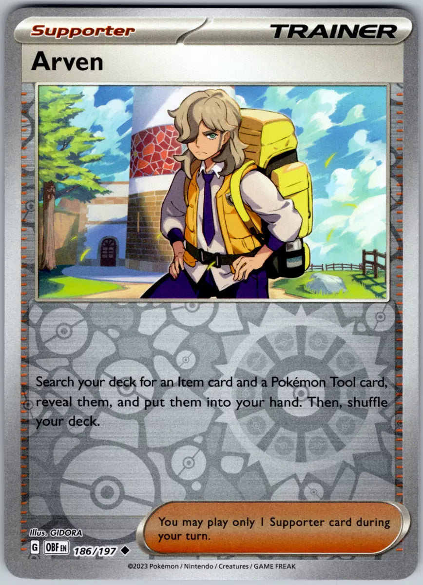 Search your deck for an Item card and a Pokémon Tool card, reveal them, and put them into your hand. Then, shuffle your deck.
